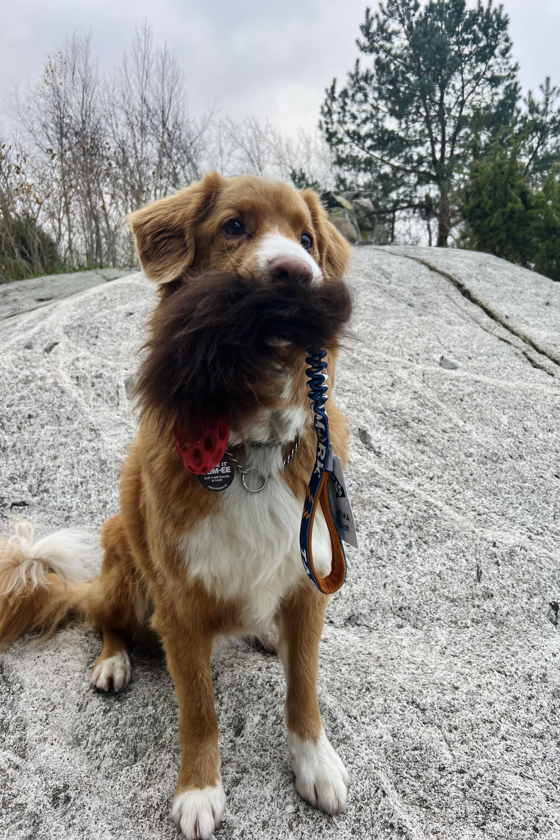 Bungee-delen tar bort rycket i armar och nacke, så att både du och hunden kan leka längre utan att det känns. Och eftersom fårskinn är ett naturligt material varierar varje leksak lite i färg, täthet och känsla – det gör dem bara mer charmiga i vår mening.