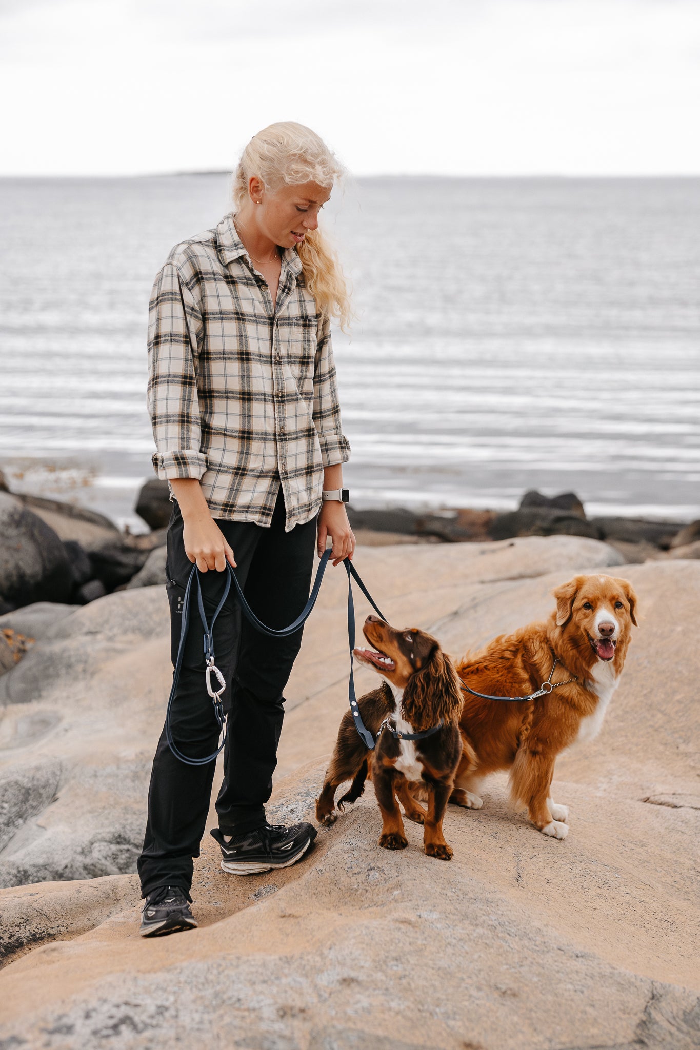 Våra dubbelkoppel är lösningen för dig som vill gå med två hundar utan trassel men med frihet. Designat av Malin på @hoglandshunden och testat på både stadspromenader och långa turer i skogen. Välj med eller utan väktarhandtag för extra kontroll när du behöver ta in hundarna kort. Kopplet kommer för två hundar, men du kan enkelt lägga till extra länkar för fler hundar till samma handtag. Tillverkat i slitstarkt, greppvänligt och luktfritt hexa-material i 16 mm som är skönt i handen och enkelt att rengöra, året runt.