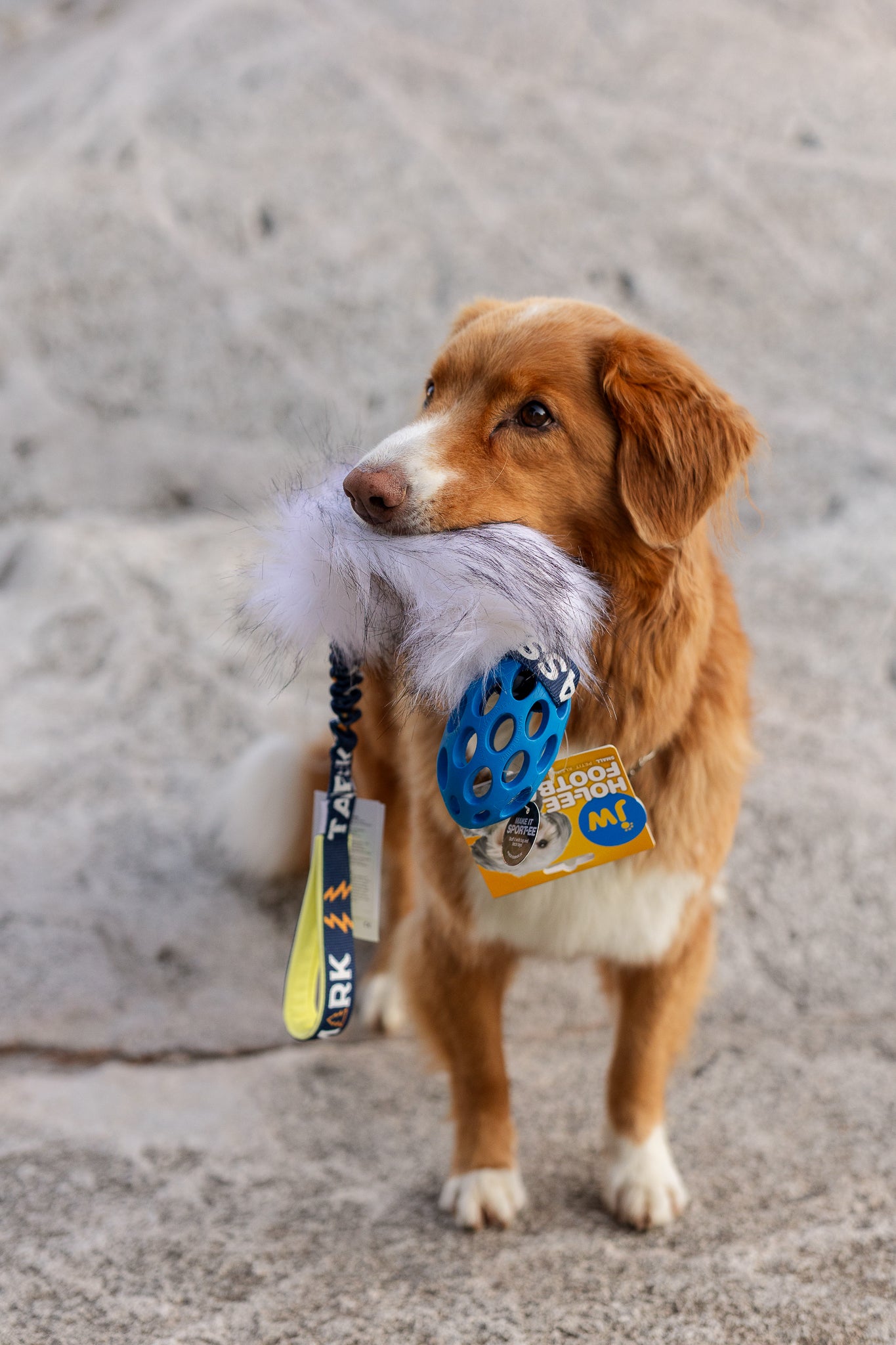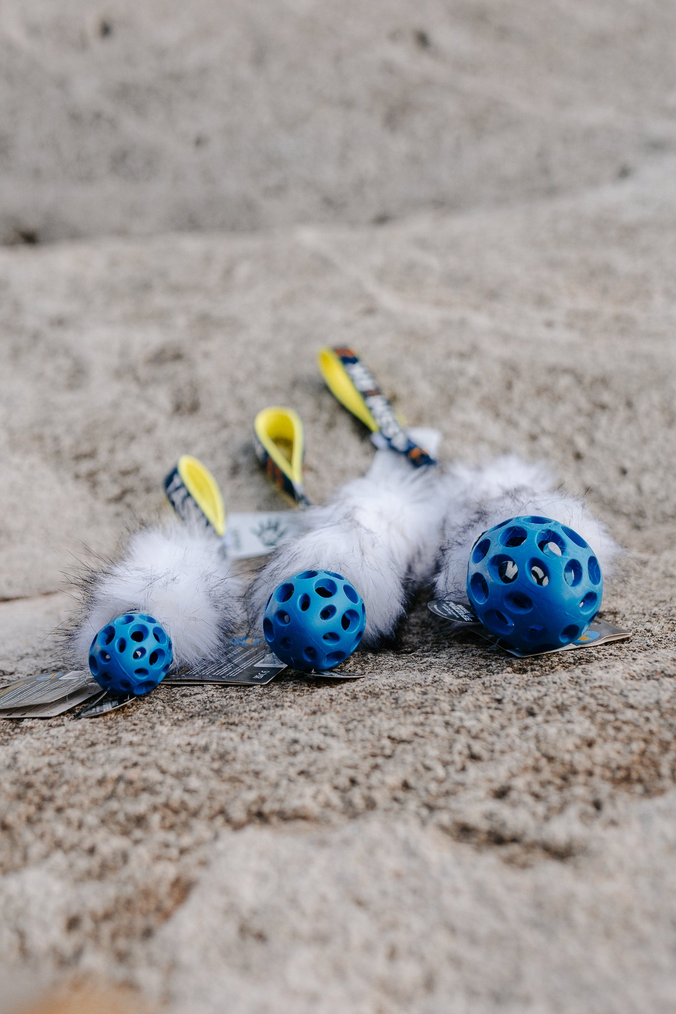 Leksaken kombinerar en JW Pet Hol-EE Football med fuskpäls och ett elastiskt handtag som gör dragkampen både rolig och skonsam. Bungee-funktionen dämpar ryck, medan pälsen väcker leklust och bollen ger grepp, studs och tuggmotstånd i precis rätt balans.